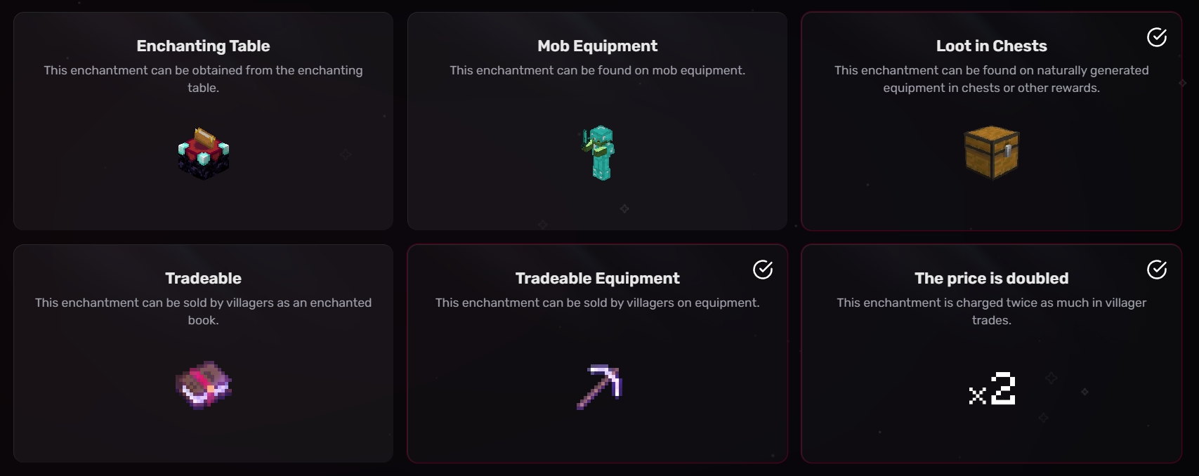 可交易装备: 村民售卖的装备可能带有该附魔。